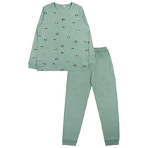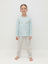 Трикотажный пижамный комплект из футера с начёсом, произведённого из натурального хлопка. У джемпера длинные рукава со спущенными плечами и эластичная мягкая горловина и манжеты. Брюки с удобным поясом на резинке, внизу манжеты. Оригинальная набивка выполнена из стойких, гипоаллергенных текстильных красителей. Все трикотажные полотна производятся в соответствии с нормами Швейцарского сертификата ЭкоТекс.