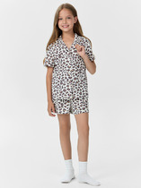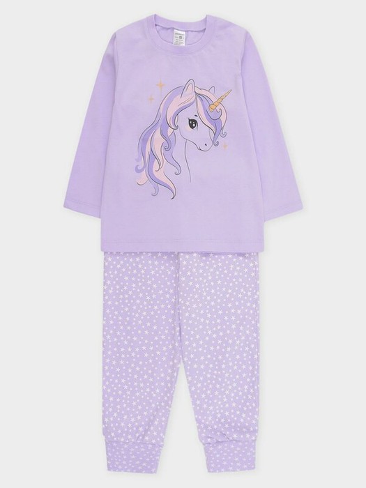 Пижама для девочки из натурального хлопка. Джемпер с длинными втачными рукавами и брюки с эластичной резинкой в поясе. Мягкие манжеты по низу брюк сделаны из материала в рубчик. Оригинальная набивка и принт выполнены из стойких текстильных гипоаллергенных красителей. Изделие сохраняет цвет и форму после многократных стирок. Все трикотажные полотна производятся в соответствии с нормами швейцарского сертификата ЭкоТекс.