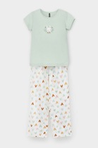 Трикотажная пижама в рубчик из натурального хлопка. Джемпер с длинными втачными рукавами и лосины с эластичной резинкой в поясе. Оригинальная набивка выполнена из стойких текстильных гипоаллергенных красителей. Изделие сохраняет цвет и форму после многократных стирок. Все трикотажные полотна производятся в соответствии с нормами швейцарского сертификата ЭкоТекс.