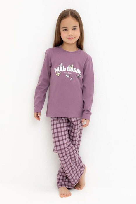 24.03 Crockid пижама для дев К 1623/спелый виноград,клетка