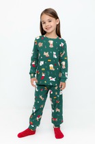 Трикотажная пижама из натурального хлопка. Джемпер с длинными втачными рукавами и прямые брюки с эластичной резинкой в поясе. Оригинальные набивка и принт выполнены из стойких гипоаллергенных текстильных гипоаллергенных красителей. Изделие сохраняет цвет и форму после многократных стирок. Все трикотажные полотна производятся в соответсвии с нормами швейцарского сертификата ЭкоТекс.