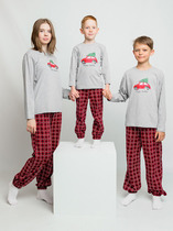 Трикотажная пижама из натурального хлопка. Удлиненная футболка с оригинальным принтом и спущенной линией плеч. У бридж в комплекте мягкий, эластичный пояс на резинке. Оригинальная набивка выполнена из стойких, гипоаллергенных текстильных красителей. Комплект сохраняет цвет и форму после многократных стирок. Все трикотажные полотна производятся в соответсвии с нормами Швейцарского сертификата ЭкоТекс.