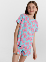 Трикотажная пижама из натурального хлопка для комфортного сна и отдыха. Свободная футболка с короткими спущенными рукавами и шорты с мягкой эластичной резинкой в поясе. Оригинальный рисунок выполнен из стойких текстильных гипоаллергенных красителей. Изделие сохраняет цвет и форму после многократных стирок. Все трикотажные полотна производятся в соответствии с нормами швейцарского сертификата ЭкоТекс.