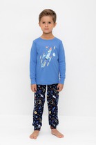 Трикотажная пижама из натурального хлопка для комфортного сна и отдыха. Футболка с короткими втачными рукавами изготовлена из эластичного материала в рубчик. Прямые брюки с мягкой эластичной резинкой в поясе изготовлены из гладкого трикотажа супрем. Оригинальная набивка выполнена из стойких текстильных гипоаллергенных красителей. Изделие сохраняет цвет и форму после многократных стирок. Все трикотажные полотна производятся в соответствии с нормами швейцарского сертификата ЭкоТекс.