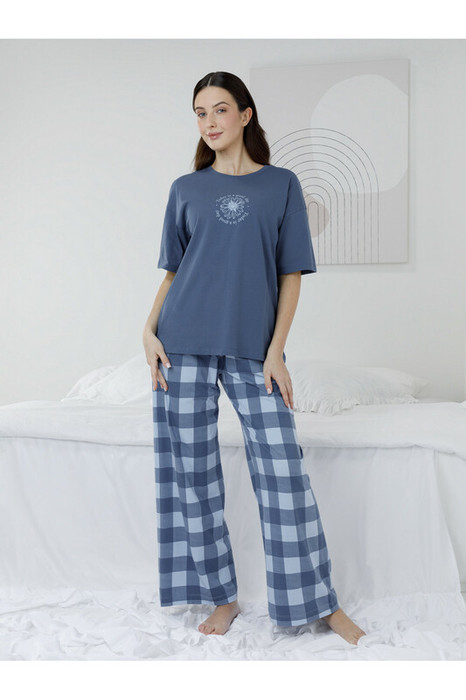 Комплект для комфортного сна и отдыха из гладкого трикотажного полотна. Футболка с короткими спущенными рукавами и прямые брюки с мягкой эластичной резинкой в поясе, которые удобно садятся по фигуре. Лёгкий материал приятен к телу, не теряет форму и позволяет коже дышать. Все трикотажные полотна производятся в соответствии с нормами швейцарского сертификата ЭкоТекс.