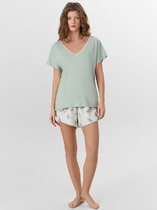 Трикотажная пижама из натурального хлопка для комфортного сна и отдыха. Рубашка на пуговицах с длинными рукавами и широкие брюки с мягкой эластичной резинкой в поясе. Гладкий материал приятен к телу, не теряет форму и позволяет коже дышать. Набивной рисунок выполнен из стойких текстильных гипоаллергенных красителей. Все трикотажные полотна производятся в соответствии с нормами швейцарского сертификата ЭкоТекс.