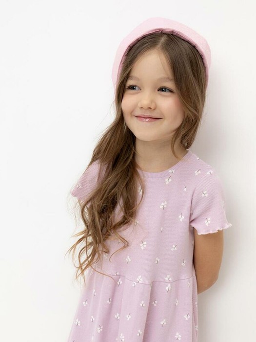 Лёгкое платье для девочки с короткими рукавами из эластичного трикотажа в рубчик. Оригинальная набивка выполнена из стойких текстильных гипоаллергенных красителей. Изделие сохраняет цвет и форму после многократных стирок.