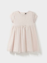 Легкое нарядное платье для девочки из высококачественного трикотажа, верхний слой - из сетки. Застёгивается на спинке с помощью кнопок. Оригинальная набивка выполнена из стойких текстильных гипоаллергенных красителей. Изделие сохраняет цвет и форму после многократных стирок.