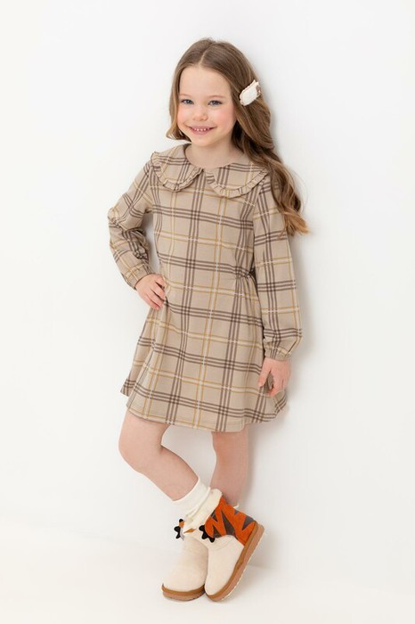Совместные покупки Курган Детская одежда Платья — Crockid платье для дев КР 5890/тем.бежевый,текстильная клетка к493