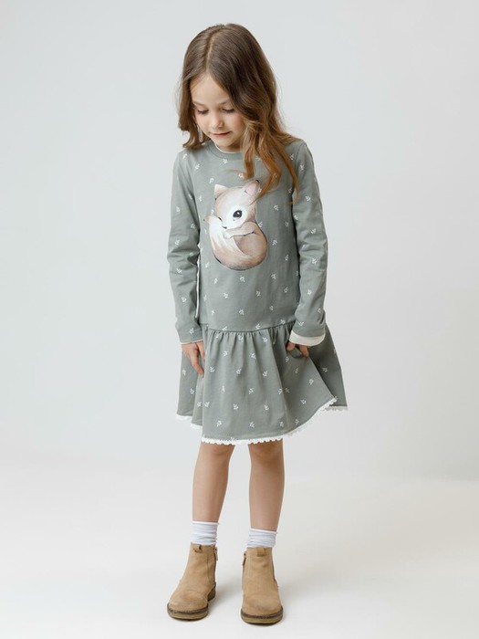 Платье с оборкой для девочки. Изготовлено из высококачественного гладкого трикотажа, произведённого из натурального хлопка. Застёгивается на кнопки в размерах 92 и 98. Оригинальный рисунок выполнен из стойких текстильных гипоаллергенных красителей. Изделие сохраняет цвет и форму после многократных стирок. Все трикотажные полотна производятся в соответствии с нормами швейцарского сертификата ЭкоТекс.