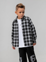 Свободная трикотажная рубашка для девочки из мягкого петельчатого футера. Застёгивается на кнопки. Модель с закругленным низом и спущенным плечом. Рисунок в клетку выполнен из стойких текстильных гипоаллергенных красителей. Изделие сохраняет цвет и форму после многократных стирок. Все трикотажные полотна производятся в соответствии с нормами швейцарского сертификата ЭкоТекс.