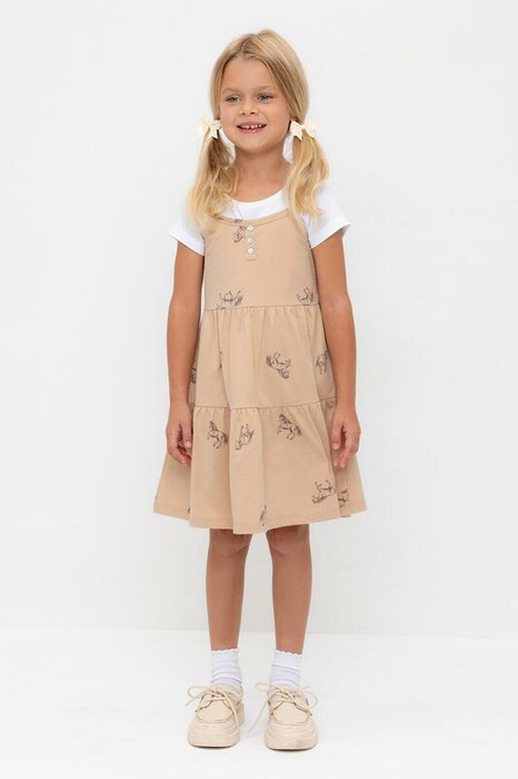 Совместные покупки Курган Детская одежда Сарафаны — Crockid сарафан для дев КР 5796-1/нежный бежевый,милые лошадки к567