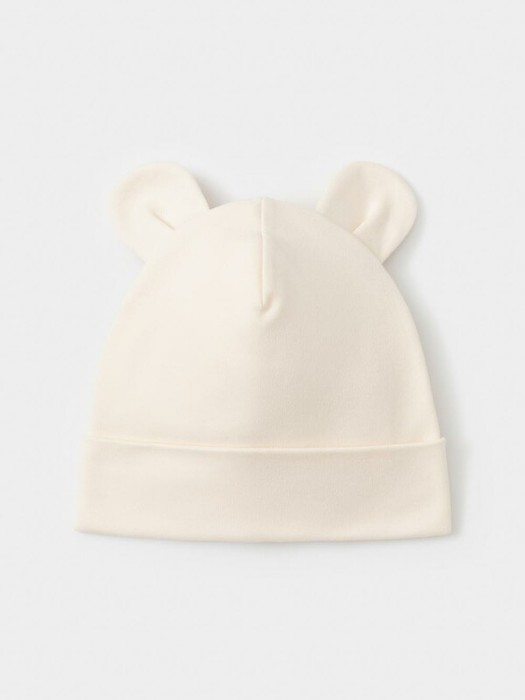 Шапка с отворотом для новорождённых из мягкого эластичного трикотажа интерлок, произведённого из натурального хлопка. Украшена декоративными ушками. Все трикотажные полотна производятся в соответствии с нормами швейцарского сертификата ЭкоТекс.