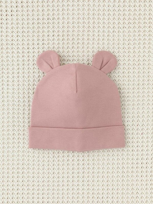 Шапка с отворотом для новорождённых из мягкого эластичного трикотажа интерлок, произведённого из натурального хлопка. Украшена декоративными ушками. Все трикотажные полотна производятся в соответствии с нормами Швейцарского сертификата ЭкоТекс.