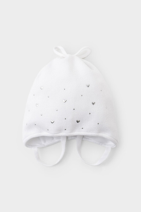 Демисезонная шапка для девочки из  смесовой пряжи с добавлением высококачественного гребенного хлопка. Хлопковый подклад выполнен из трикотажного полотна переплетения интерлок. Комфортное прилегание, высококачественные материалы обеспечивают защиту от холода и хороший теплообмен. Декоративные элементы в виде страз надежно зафиксированы на изделии что позволяет выдерживать многократные стирки.