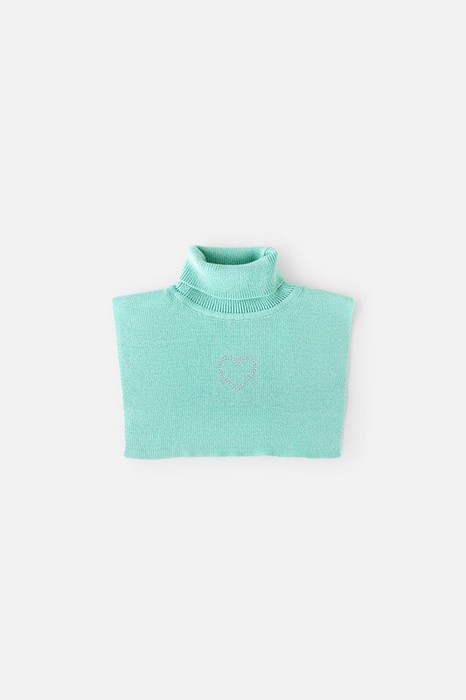Манишка с высоким отворотом для девочки. Связана из хлопковой пряжи. Защитит горло и грудь от ветра и холодного воздуха. Украшена аппликацией из страз  в форме сердечка.