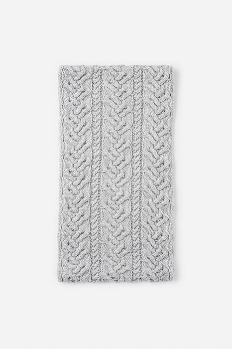Стильный снуд из полушерсти с вязаным узором из кос. Защитит горло и согреет ребёнка во время прогулки.