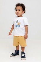 Легкие трикотажные шорты для мальчика из высококачественного хлопка. Эластичный пояс регулируется при помощи шнурка.