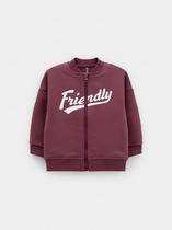 Бомбер с контрастными рукавами для мальчика. Изготовлен из мягкого петельчатого трикотажа. Застёгивается на кнопки. Воротник, манжеты и пояс - вязаные. Спереди карманы с листочкой.