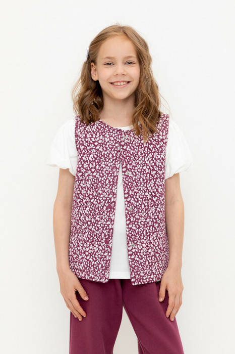 Crockid жилет для дев КР 302575/насыщенная клюква,милые цветочки к499