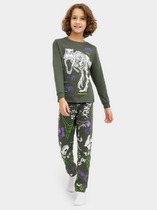 Трикотажный пижамный комплект из натурального хлопка. В комплекте рубашка с короткими рукавами и  застежкой на пуговицы. Прямые  брюки с удобным поясом на резинке. Оригинальная набивка выполнена из стойких, гипоаллергенных текстильных красителей. Все трикотажные полотна производятся в соответствии с нормами Швейцарского сертификата ЭкоТекс.