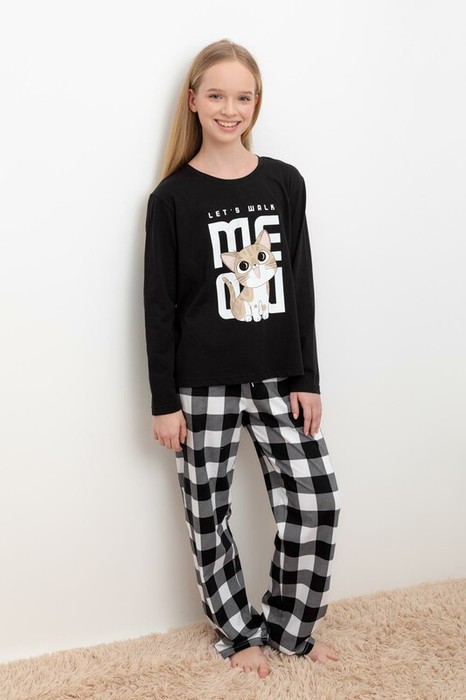 Cubby пижама для дев КБ 2830/черный,клетка виши