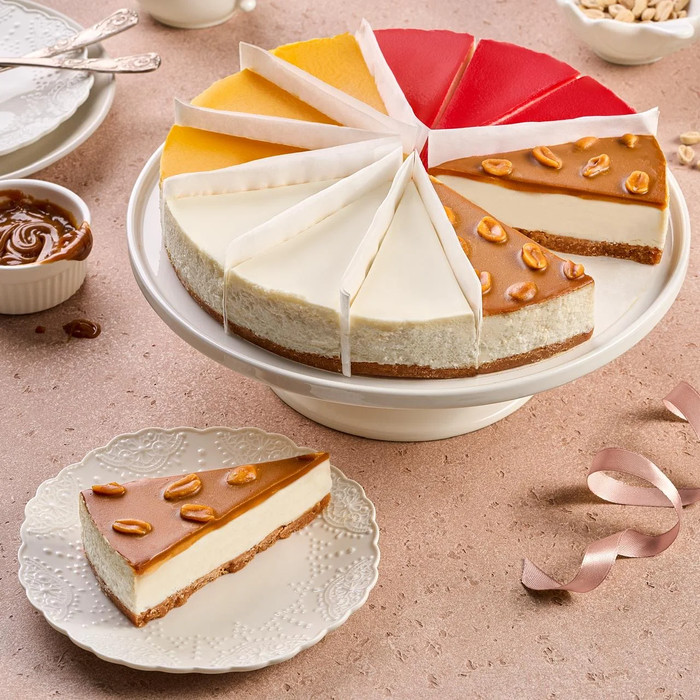 В чизкейке ассорти присутствуют чизкейки с разнообразными вкусами