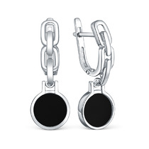 Серьги из серебра с чёрным агатом родированные 925 пробы С-4322-Р-Ча