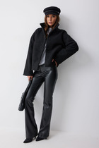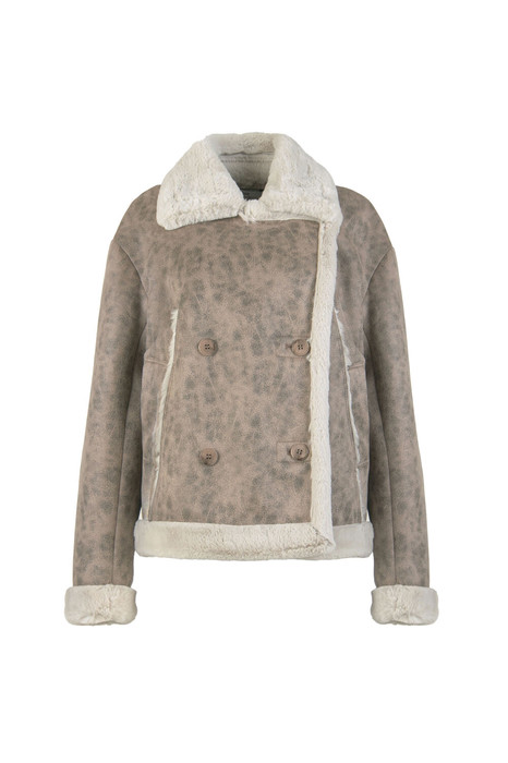 Дубленка женская прямого силуэта, двубортная, длиной до середины бедра. На переде карманы с настрочной листочкой, застежка на петли и пуговицы. Рукава длинные, двухшовные. Воротник и лацкана отложные. Правый лацкан можно застегивать на кнопку.