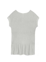 Джемпер прямого кроя, выполнен из трикотажного ворсистого полотна серого цвета. Характеристика: прямой крой, воротник стойка, застежка центральная планка на петли-пуговицы, по низу платная чуть заужена, рукав втачной, манжет широкий. Длина рукава от края горловины 78см, длина изделия по спинке 51см.