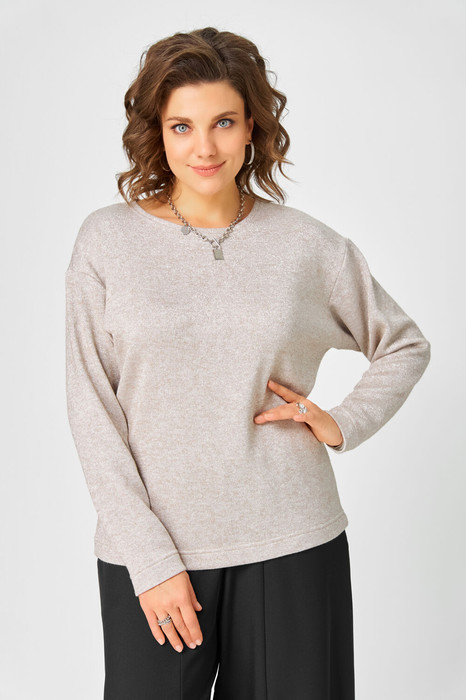 Джемпер женский из приятного к телу трикотажа с люрексом, свободного кроя. Джемпер имеет округлую горловину, которая создает стильный элегантный образ. Добавьте аксессуары и шикарный лук на