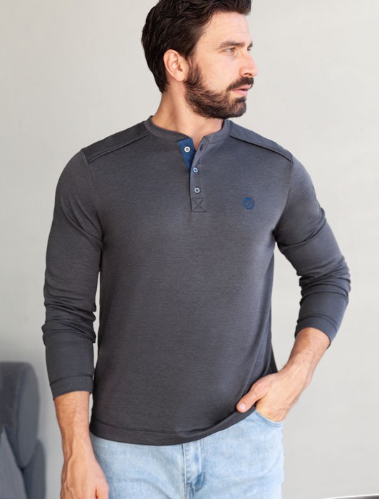 Совместные покупки Курган Мужская одежда Футболки — Джемпер хенли из полотна пике с меланжевым плетением с эластаном