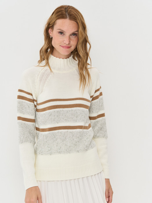 Джемпер NewVay 9242-94062 молоко/бело-серый/карамельный кофе