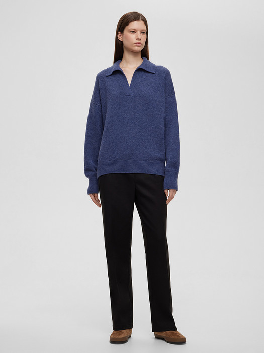 Джемпер-поло свободного кроя из кашемира и шерсти, v-образный вырез, воротник и спущенная линия плеча.