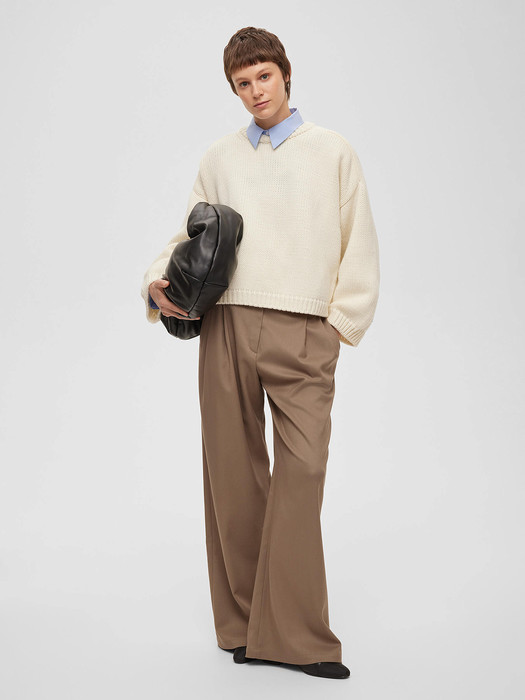 Джемпер с цельным плечом крупной вязки, молочный