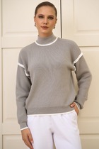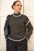 Цельнокроеные длинные рукава дополнены небольшими манжетами, по бокам аккуратные разрезы, которые придают стильный акцент, по краю металлическая нашивка с логотипом бренда. Ворот круглой фо