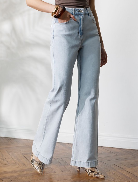 Состав: 70%Хлопок 28%ПЭ 2%ПУ Плотность: 11 OZ Параметры модели на первом фото: Рост 172, бюст 88, талия 64, бедра 88 Размер товара на первом фото: 42Джинсы-клеш в голубом оттенке выполнены из эластичного денима. Модель с декоративной стиркой и контрастной бежевой строчкой. Высокая посадка акцентирует талию и вытягивает силуэт. Изделие дополнено брендированным патчем. Подходит для любого типа фигуры.