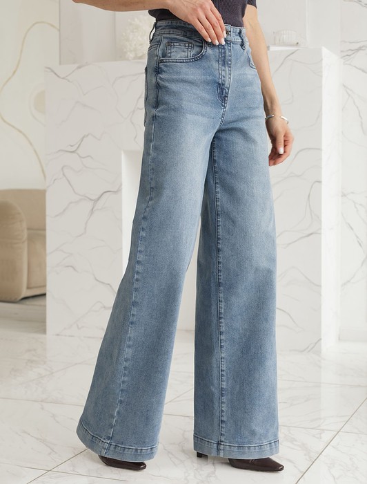 Совместные покупки Курган Женская одежда Футболки — Джинсы трубы с декоративной стиркой из эластичного денима средней плотности