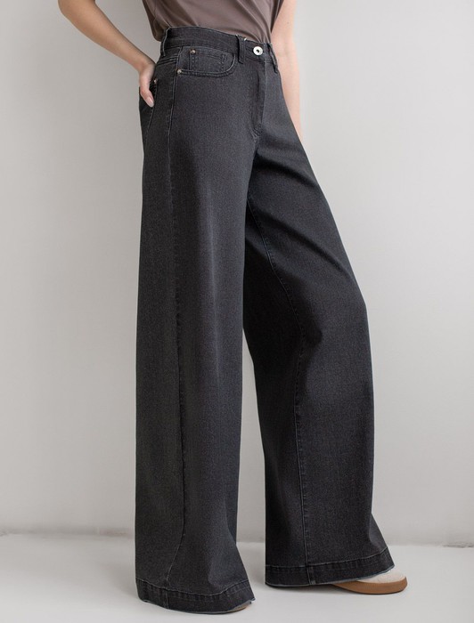 Состав: 70%Хлопок 28%ПЭ 2%ПУ Плотность: 12,5 OZ Параметры модели на первом фото: Рост 172, бюст 81, талия 59, бедра 88 Размер товара на первом фото: 42Стильные расклешенные джинсы черного цвета из эластичного денима созданы для современного образа и максимального комфорта. При производстве джинсов применена технология «вареные швы», которая основана на локальном вымывании красителя из плотных участков ткани — сгибов и швов — за счет механического воздействия во время промышленной стирки. Стоун вошинг - энзимная стирка с камнями. Камни воздействуют на ткань, выбивая краску на швах, создавая контрастные мраморные потертости и мягкость. Премиальный материал обеспечивает надежность и приятные ощущения при носке, а добавление эластичных волокон делает посадку особенно удобной. Высокая талия и расширенный крой к низу визуально вытягивает рост и подчеркивает достоинства, делая силуэт женственным, а декоративная стирка добавляет акцент. Эти широкие джинсы - оличное решение для девушек размера полюс сайз. Детали продуманы до мелочей: мягкий пояс не сдавливает живот, задние карманы и шов расположены на правильном уровне, что бы визуально подтянуть фигуру, а плотный джинс сохраняет форму после длительной носки и частых стирок.