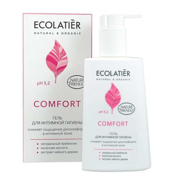 ECOLATIER Body Care COMFORT Обеспечивает правильный уход и комфорт интимной зоны. Снижает ощущение дискомфорта в интимной зоне и борется с такими неприятными ощущениями как жжение, зуд, покраснение.