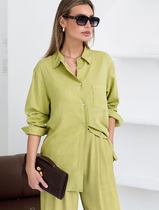 Свободная удлиненная блузка с карманом изо льна с вискозой
