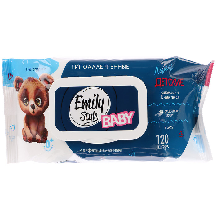 Emily Style ВЫГОДНО ДЕТСКИЕ Влажные салфетки Гипоалергенные 0+ с крышкой 120шт (