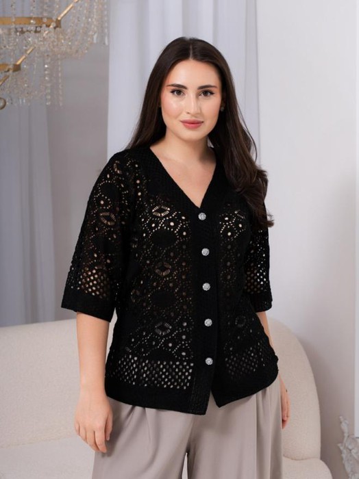 Совместные покупки Курган Женская одежда Кофты, кардиганы — ESENIA Кофта женская летняя Ажур - Чёрный