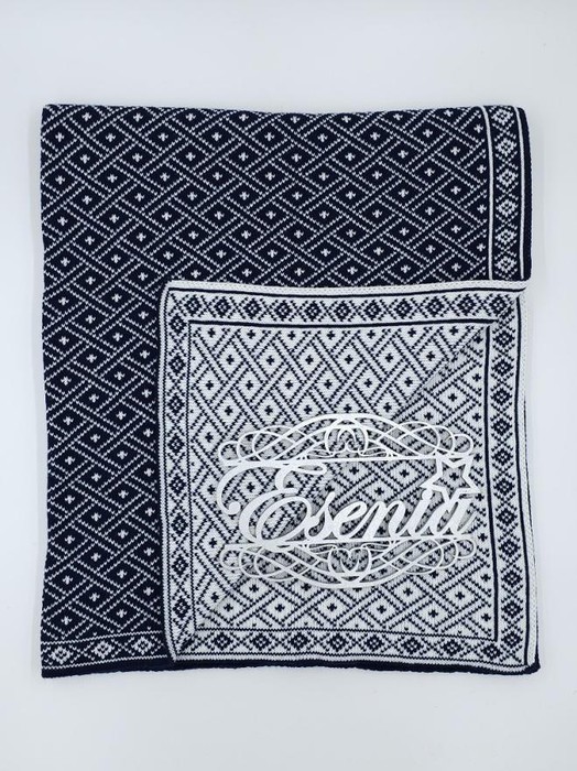 ESENIA Плед детский двусторонний полушерсть Узор, Тёмно-синий / Белый