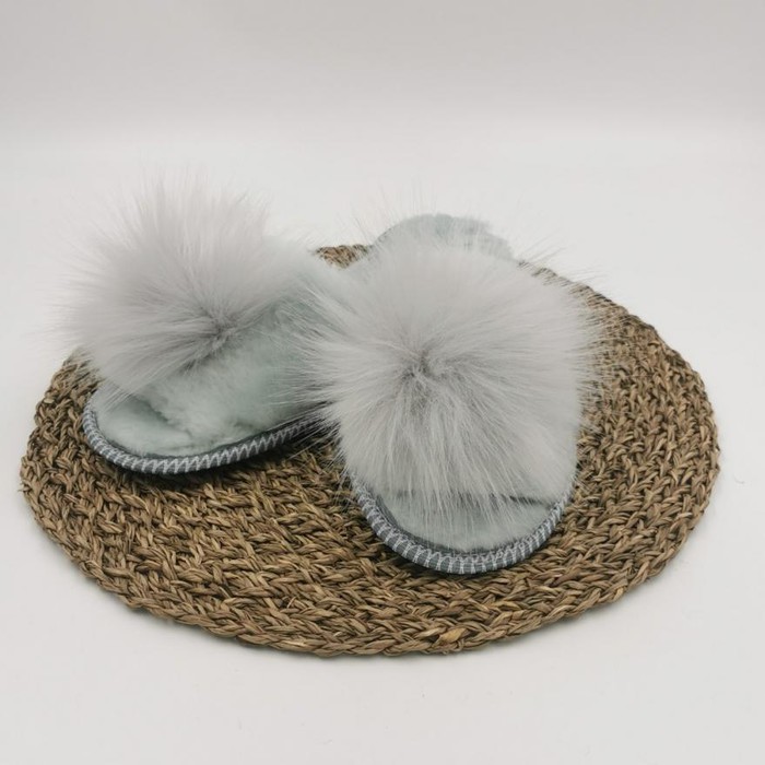 ESENIA Тапочки женские из мутона на твёрдой тапочной подошве - Серо-Голубой