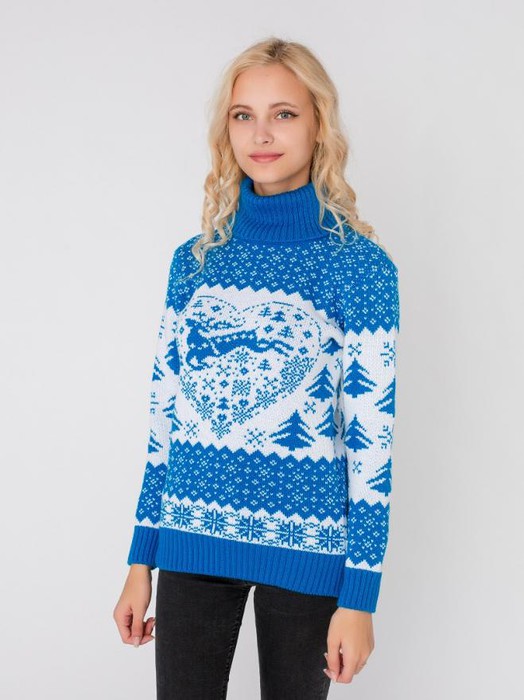 Совместные покупки Курган Женская одежда Джемперы, свитеры, водолазки — ESENIA Водолазка женская полушерстяная Олени - Бирюза