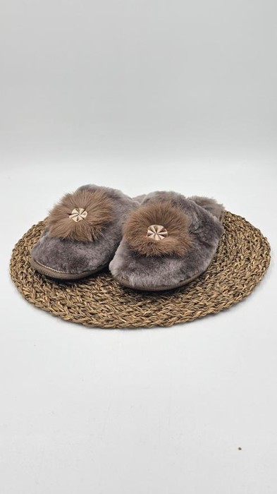Совместные покупки Курган Женская обувь Домашняя обувь — ESENIA Женские тапочки из мутона с помпоном