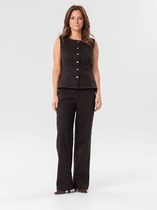 27.03 Vilatte Удлиненный костюмный жилет в полоску с поясом из легкого хлопково