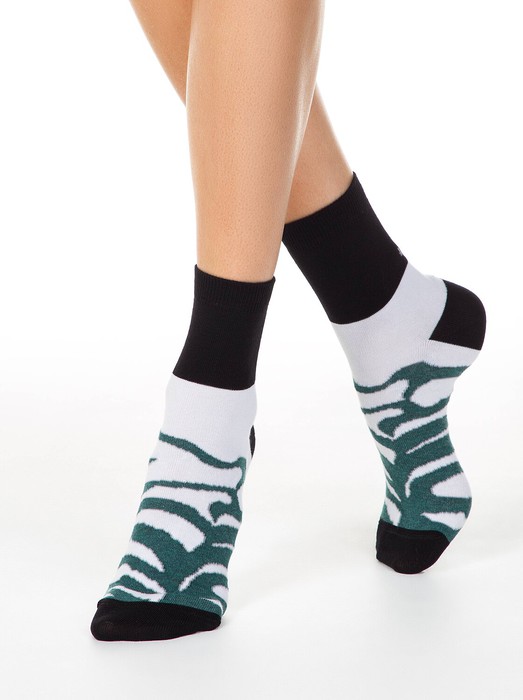 Артикул поставщика: CLASSIC Состав: хлопок 68%, полиэстер 24%, полиамид 6%, эластан 2% Год: 2021 Страна: Беларусь Российский размер: 23Классические женские носки из хлопка, с рисунками