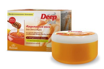 Мера: шт. Артикул: 6825 Производитель: Флоресан Депиляция была известна за много веков до нашей эры, во времена таких великих цивилизаций, как Вавилон, Финикия, Древний Египет... Для современной Леди депиляция стала неотъемлемой частью ухода за собой, обязательной гигиенической процедурой.  Фруктовый воск  для депиляции Deep Depil, созданный на основе древних традиций,  позволяет делать эту процедуру деликатно и нежно даже на таких чувствительных участках тела, как подмышки, линии бикини и лицо. Теплый водорастворимый воск можно использовать для профессионального и домашнего ухода: это просто, удобно и без перерасхода воска. Остатки воска легко смываются водой, а эффект гладкости кожи держится до 4-х недель. Подарите себе приятное ощущение скользящего шелка по Вашей коже! В комплект входит: баночка с воском 350 г, анатомическая лопатка, десять многоразовых нетканый полосок, инструкция по применению. Античные традиции легли в основу новой формулы фруктового воска для депиляции. Помимо деликатного удаления нежелательных волос, воск оказывает эффект пилинга. Входящий в состав натуральный мед увлажняет и смягчает кожу в зоне депиляции, предотвращают раздражение и врастание волос под кожу. С каждой процедурой волосы становятся тоньше, а сама процедура абсолютно безболезненной. Подходит даже для самой чувствительной кожи. Гладкость кожи сохраняется до 4-х недель. Инструкция по применению: 1.Разогрейте воск до консистенции жидкого меда. Для депиляции в домашних условиях воск можно разогреть на водяной бане,  либо в микроволновой печи (температура разогретого продукта – 38 градусов). Рекомендованное время нагрева: - в микроволновой печи 20-40 сек в зависимости от мощности печи - в горячей воде или на водяной бане 5-10 мин 2.Проверьте температуру воска, нанося небольшое количество на внутреннюю сторону запястья, чтобы убедиться, что температура подходит для применения. 3.Нанесите продукт тонким слоем на зону депиляции в направлении роста волос, затем положите нетканую полоску, хорошо прижмите и резко удалите полоску против роста волос.            4. Удалите остатки воска с кожи. Просто смойте тёплой водой.            5. Полоски многоразового использования ( водорастворимый воск легко отстирывается) Внимание: перегретый воск может привести к ожогам! Только для наружного применения! Хранить в недоступном для детей месте. Примечание: Депиляция не проводится после ванны, сауны, а также сразу после посещения солярия и процедуры химического пилинга. После проведения процедуры депиляции не рекомендуется загорать в течение 24 часов.